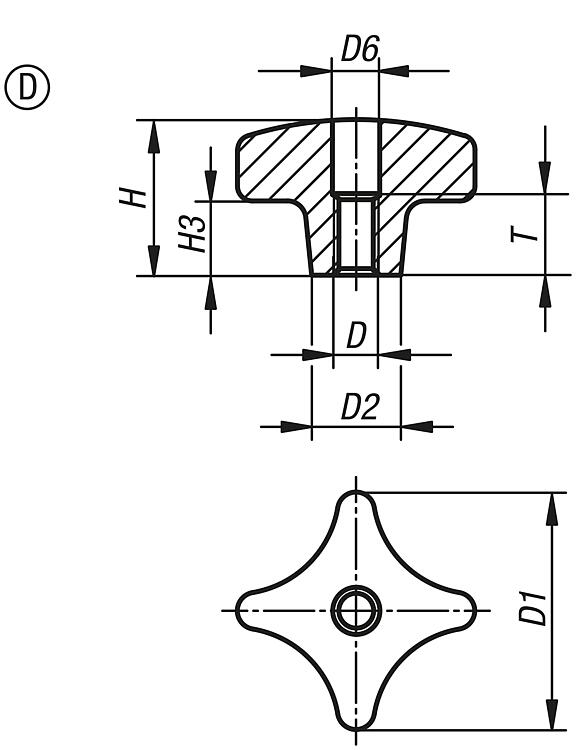 06160_DPalm grips DIN 6335, grey cast iron, Form D, thread countersunk |