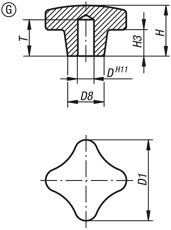 06180_GPalm grips similar to DIN 6335, Form G with blind hole |