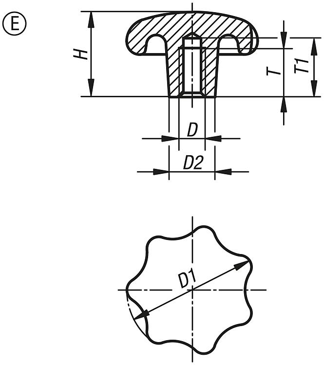 06192_EStar grips similar to DIN 6336, aluminium, Form E, blind tapped... |