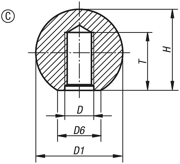 06250_CBall knobs smooth DIN 319 enhanced, Form C, with molded thread |