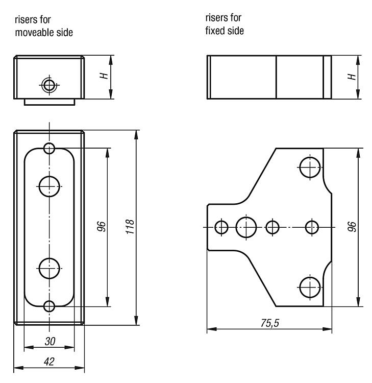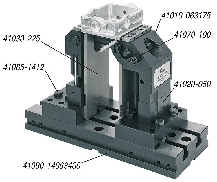 DescriptionMaterial:Steel.Version:Black oxidised.Note:Assembly of the height adapters is performed between the base plate and the jaw. Thus the clamping height for the 3 axis clamping system can be increased to 125 or 150 mm. For the 5 axis clamping system the clamping height can be increased to 200, 225 or 250 mm. When the height adapters are being used, please also order the corresponding 41030 support guides.