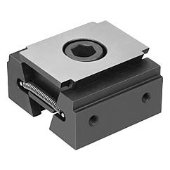 Material:Double wedge and clamping segments mild steel.Version:Double wedge and clamping segments hardened, phosphated.Note:The two screw-on holes in the clamping faces also enable seating ledges to be mounted so as to optimise the clamping depth of the workpieces.Supplied withWedge clamps.