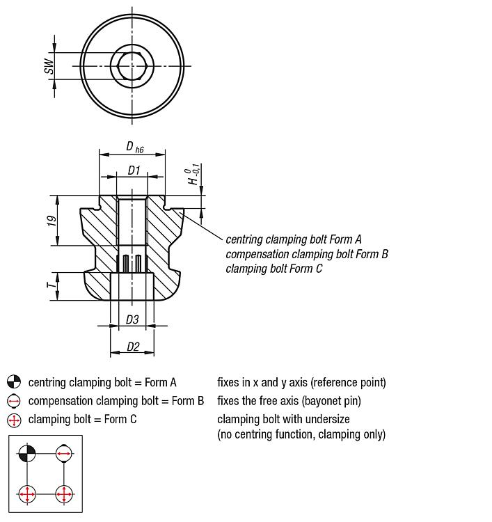 Other clamping pins in the same system size are available under NLM 42208, 42210 and 42208 with threaded pin.