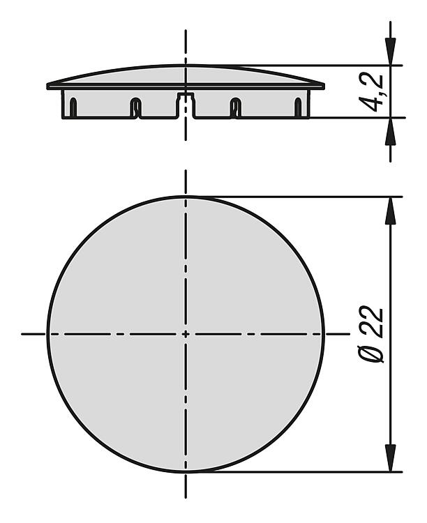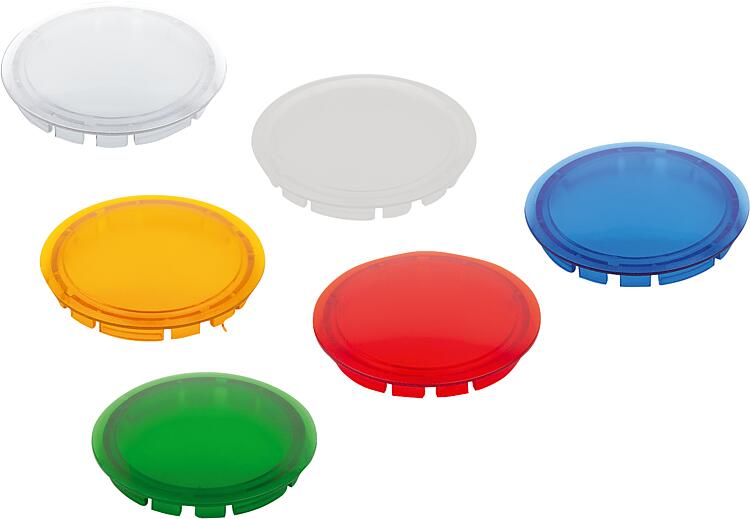 DescriptionMaterial:PA12 plastic.Version:Domed, transparentNote:Cups for a clean finish on indicator lights. The cup is mounted on the indicator light by simply pushing it on tool-free. It can also be removed again using the optionally available cap lifter.