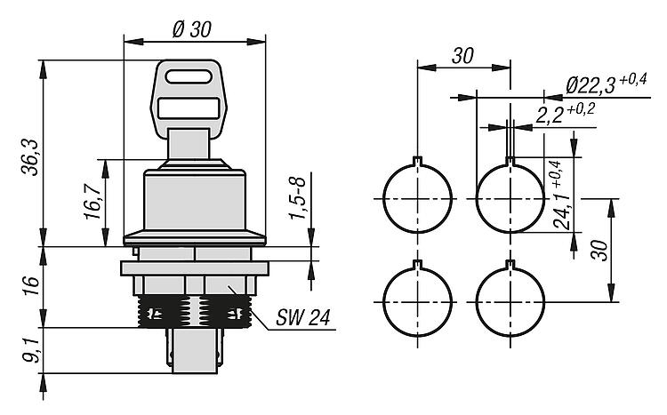 81050-10Lockable switch, snap-action, installation version, Ø 22.3... |