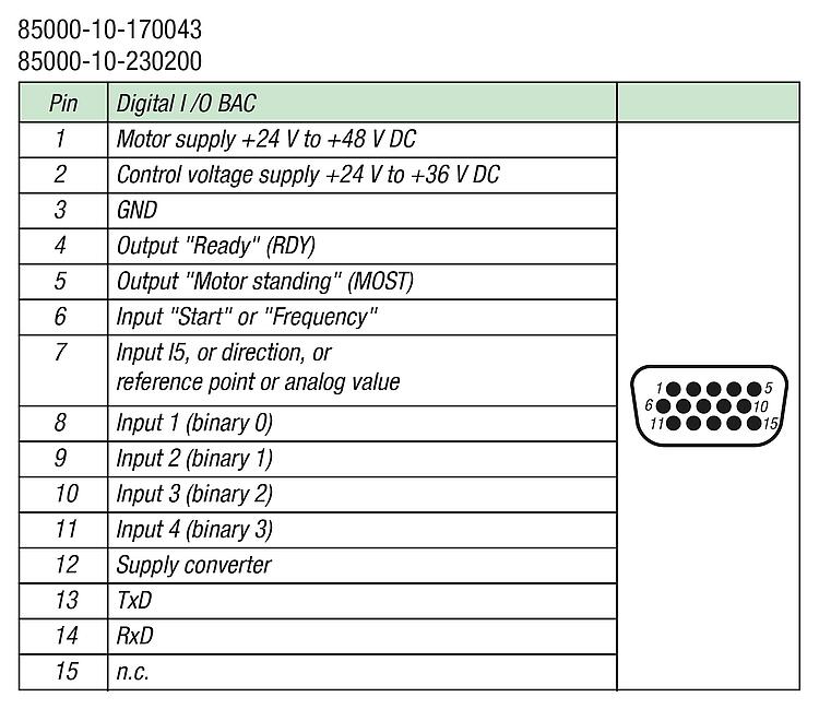 | 85000-10-170043 | 0,43 | adjustable up to 1,7 | 0,068 | DIGITAL I/O BAC, CYCLE/DIRECTION BAC |  | | on request | | | 85000-10-230200 | 2 | adjustable up to 3 | 0,39 | DIGITAL I/O BAC, CYCLE/DIRECTION BAC |  | | on request | | | 85000-10-340820 | 8,2 | adjustable up to 6,3 | 3,6 | DIGITAL I/O OR CYCLE/DIRECTION |  | | on request | |