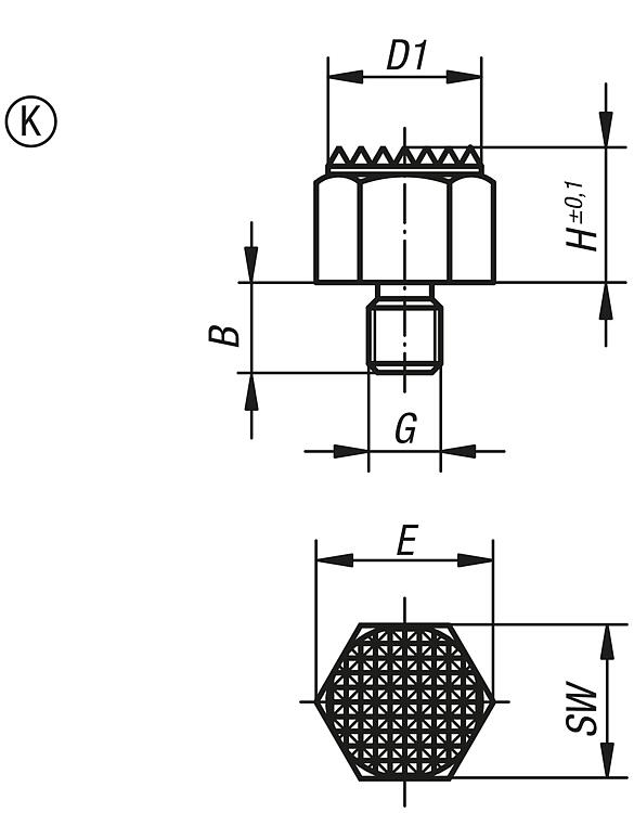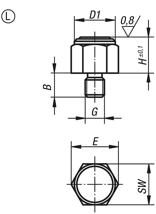 Order No. | Form | B | D1 | G | H | E | SW | Tightening torque max. Nm | CAD | Acc. | Price | Order |