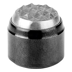 DescriptionMaterial:Body carbon steel, ball 1.2067 ball-bearing steel, insert carbide.Version:Body tempered and phosphated. Ball hardened.Note:Self-aligning pads serve as stops, supports and thrust pads in fixture constructions.