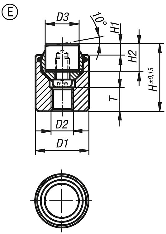 Self-aligning pads with O-ring and exchangeable inserts, Form E, flattened stainless steel insert smooth