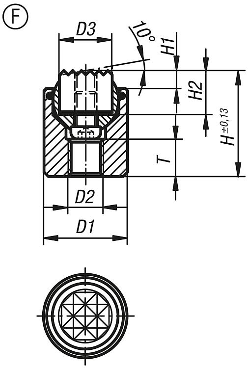 Self-aligning pads with O-ring and exchangeable inserts, Form F, flattened ball with diamond grip
