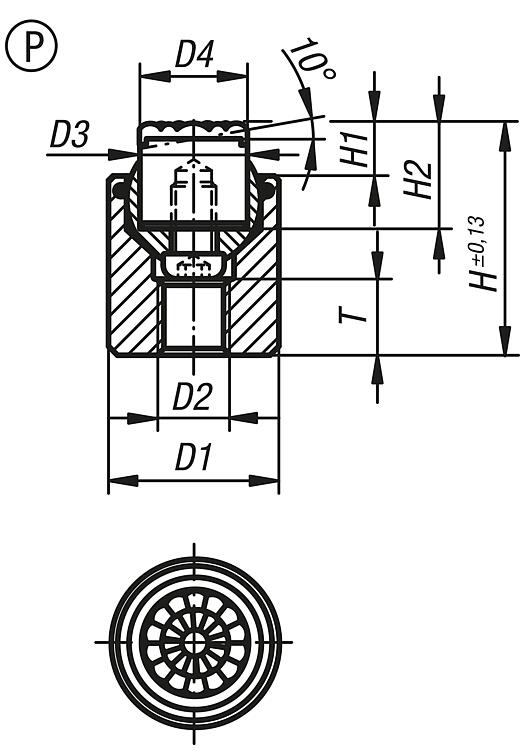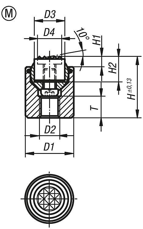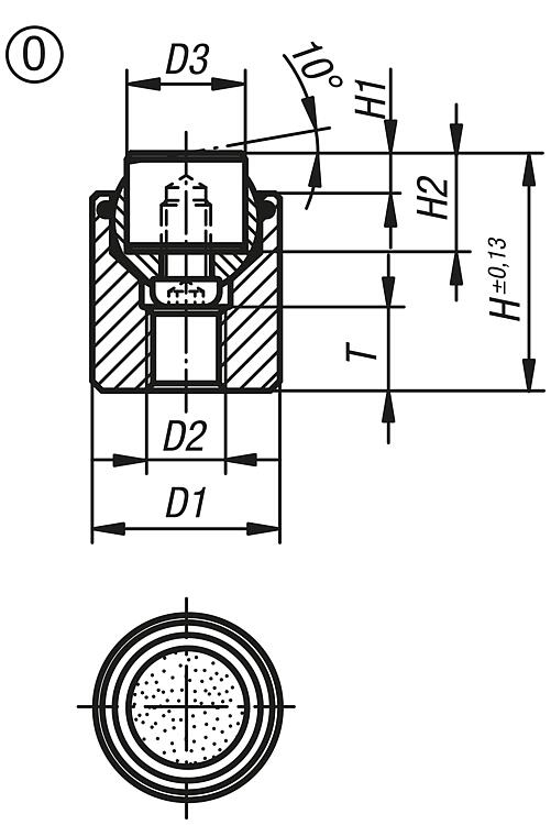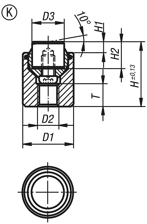 Self-aligning pads with O-ring and exchangeable inserts, Form K, flattened POM insert smooth
