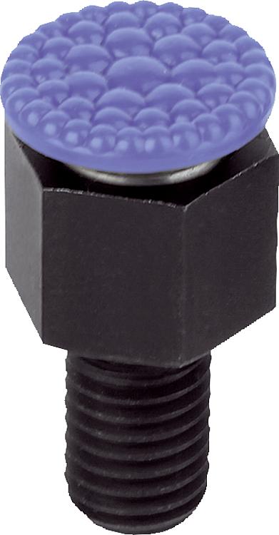 DescriptionMaterial:Body carbon steel. Ball: Form P stainless steel with polyurethane surface.Version:Body tempered, black oxidised. Ball: Form P polyurethane, Shore hardness 60°.Note:The self-aligning pads are used to support and clamp unmachined and machined workpieces. In addition, they serve as stops, supports and pressure pieces in fixtures and toolmaking.