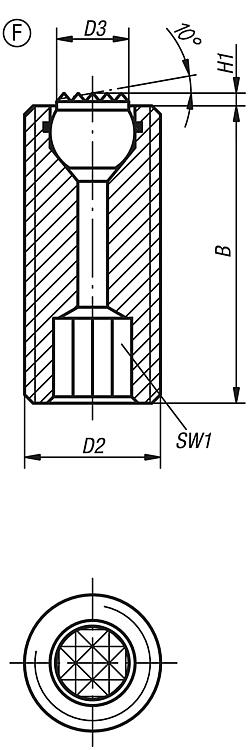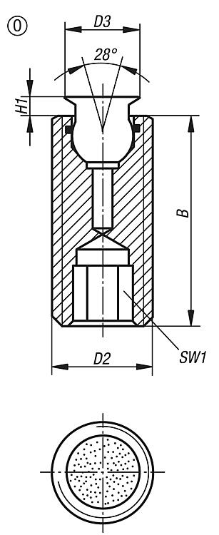 Self-aligning pads, adjustable, with O-ring and hexagon socket Form K, flattened POM ball smooth