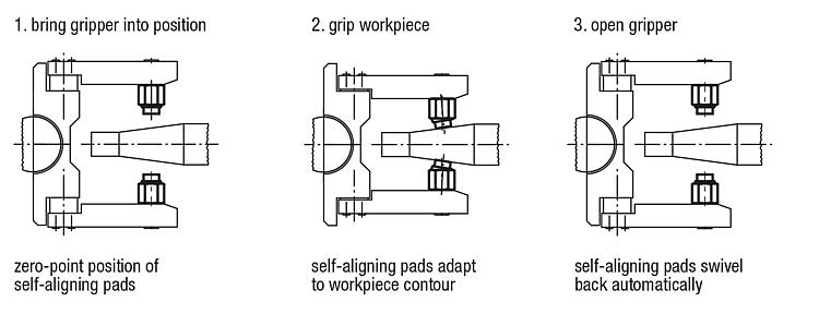 Note:The self-aligning pads serve as stops, rests and thrust pads in fixture construction.
