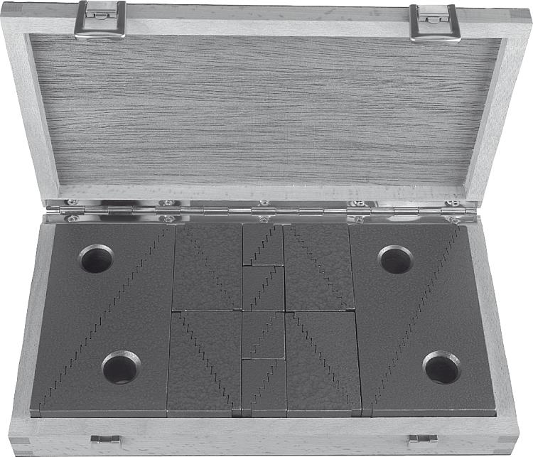 DescriptionMaterial:Carbon steel.Version:PaintedNote:The special tooth form allow these blocks to be used vertically or horizontally. The complete set in a wooden box comprises 20 parts which are interchangeable and provide many possible uses. These blocks can also be ordered separately, see 02270. Step blocks can also be used together with stepped-heel clamp straps 04070.Special features: