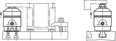 1) grub screw M12x30 DIN 913 (exchangeable) 2) nut for T-slots M12x14 DIN 508