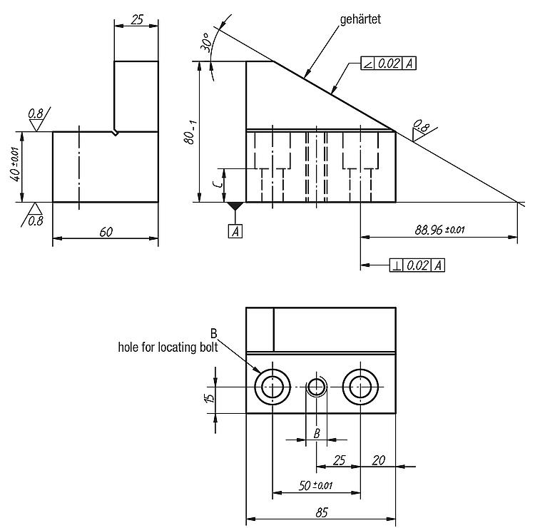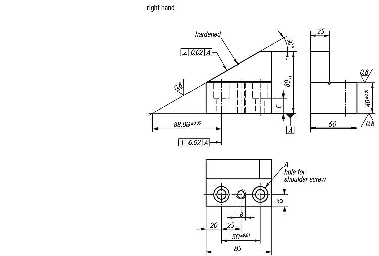 DescriptionMaterial:Carbon steel.Version:Black oxidised. Half prism (30°) and contact faces ground.Note:Right-hand and left-hand split V-blocks are used for positioning round parts. Split V-blocks permit adjustment to the respective workpiece diameter.Special features: DownloadHere is all the information as a PDF datasheet: