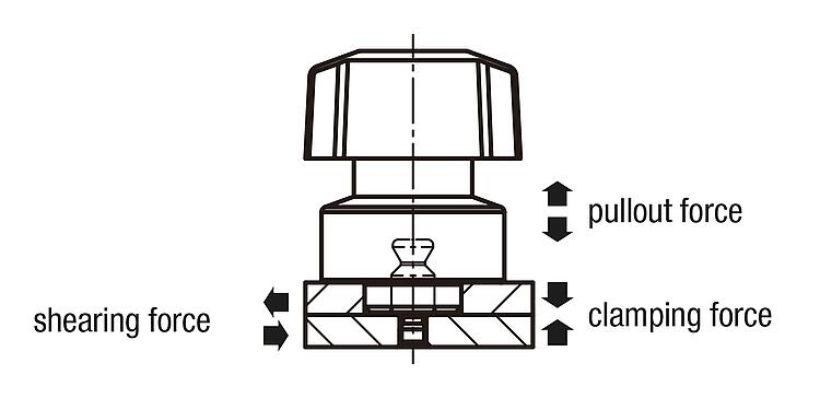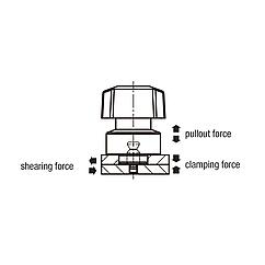 | Order No. | Component material | D | D1 | D2 | D3 | D4 | D5 | D6 | D7 | D8 | H | H1 | H2 | M | T | T1 | T2 | Clamping force N | Pullout force F kN | Holding force N | Temperature resistance | CAD | Acc. | Price | Order |