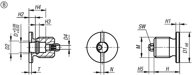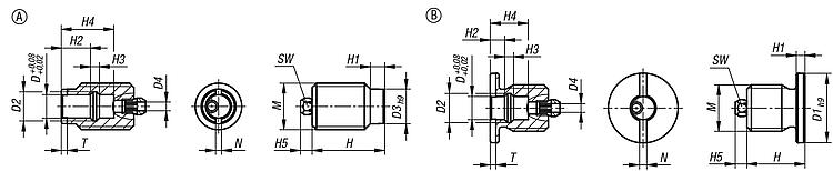 Locating bushes, stainless steel for status sensor, Form B, with thread and collar