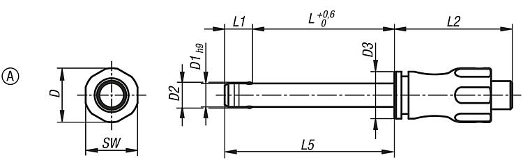 | Order No. | Form | D | D1 | D2 | D3 | L | L1 | L2 | L5 | SW | Receiving hole H11 | Shearing force double shear max.kN | CAD | Acc. | Price | Order |