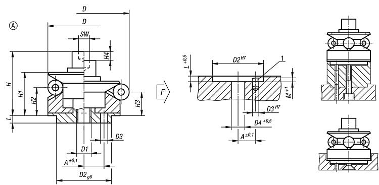 Centring clamp with ball segments, Form A