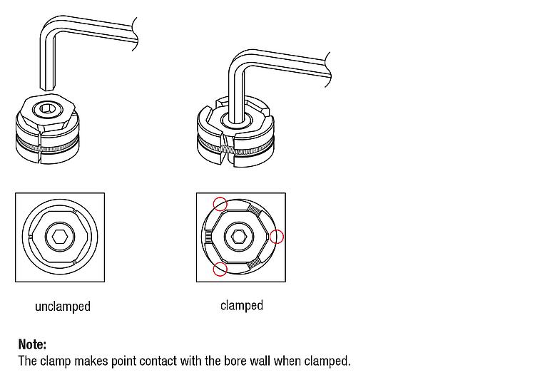 During the clamping process, the clamping force acts punctually to the bore wall.Drawing reference: