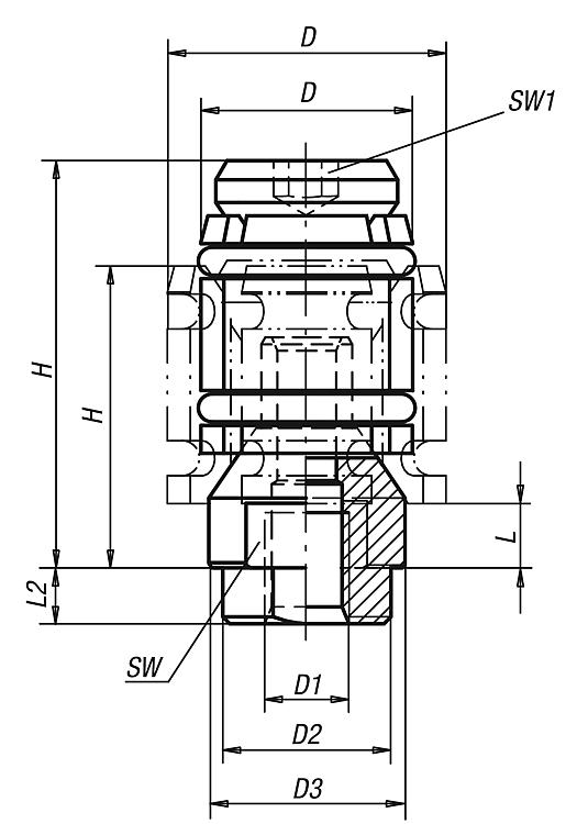 | Order No. | Thread type | D | D1 | L2 | D min. | D2 | D3 | H min.