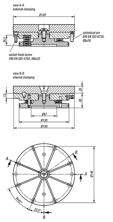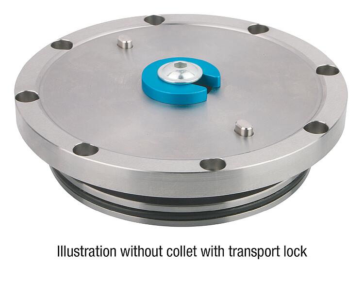 Note:The machinable collet system is suitable for mounting on fixtures and clamping systems. Collets for external and internal clamping can be mounted on the flange plate. The contour of the workpiece to be clamped is machined into the collet. Free-form and asymmetrical contours can be clamped.