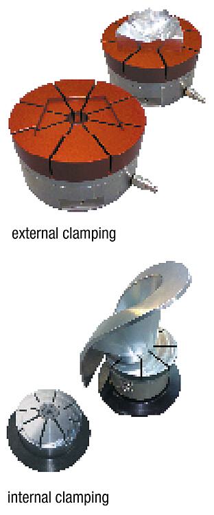 DescriptionMaterial, version:High-strength aluminium, red (external clamping) or clear (internal clamping), anodised.Note:Collet for clamping external or internal contours. The contour of the workpiece to be clamped is imparted to the collet. Free-form surfaces and asymmetrical contours are possible.