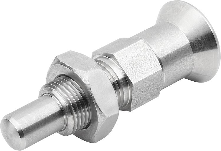 Stainless steel version A4: Threaded sleeve bright. Mushroom grip bright or abrasive blasted. Indexing pin ground and chemically nickel-plated. Indexing pin ground, bright.Note:The materials used enable a wide range of applications. Indexing plungers made from A4 stainless steel are recommended for applications with very high corrosion resistance requirements. Accessory:Spacer rings 03089. fastening sets for thin-walled parts 03094-10.Special features: DownloadHere is all the information as a PDF datasheet: