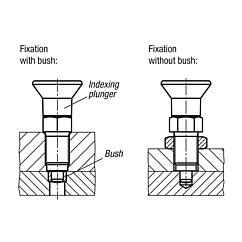 Premium indexing plungers are characterised by higher manufacturing demands of the indexing plunger and the threaded sleeve. In addition, a centring locator has been added to the threaded sleeve, which can be used to increase positioning accuracy.Material:Steel version: