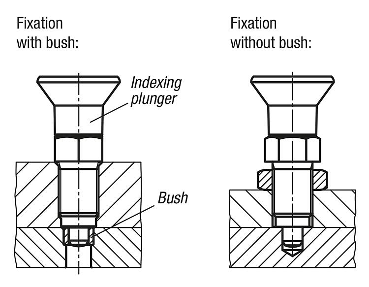 DescriptionProduct description:Indexing plungers are used where any change in locking position due to lateral forces should be prevented. A new indexed position can be only be moved to after the pin has been manually retracted. Form C and D are recommended for applications where the indexing pin should remain disengaged for an extended period and be prevented from springing back.