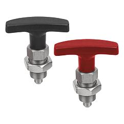 03090_BIndexing plungers, steel or stainless steel with plastic T-grip... |