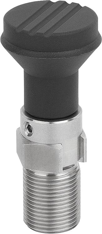 Actuation variants: with detent function, without detent function, with rotation lock, rotary cam. Grip types: Mushroom grip, T-grip, star grip, clamping lever.Material:Actuating element 1.4305.