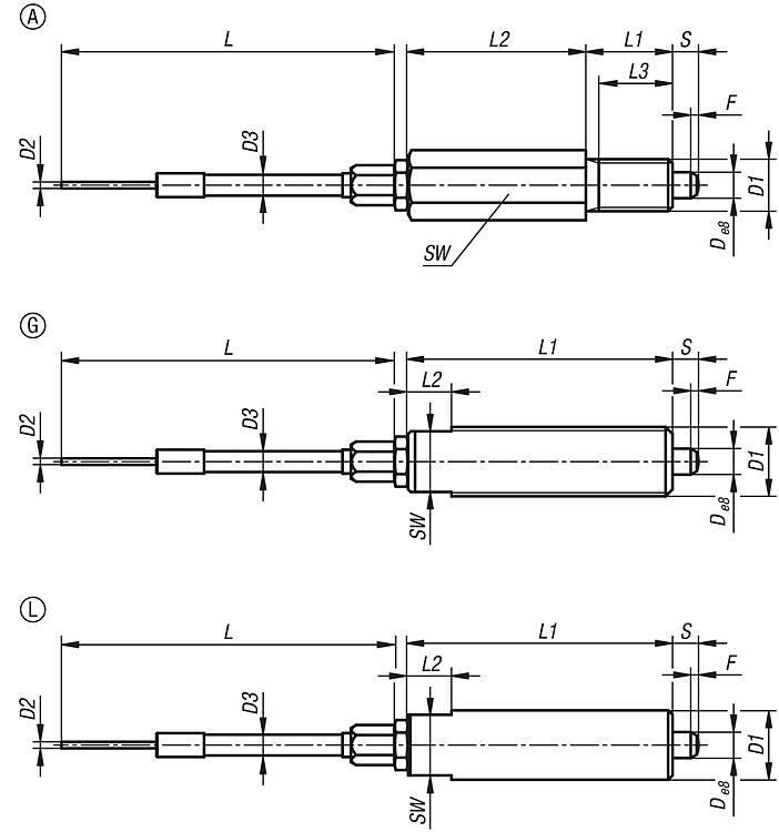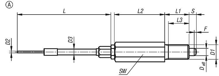 Indexing plungers, stainless steel, for remote control, Bowden cable systems, with hexagon