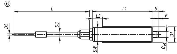 Indexing plungers, stainless steel, for remote control, Bowden cable systems, full thread