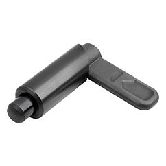 DescriptionProduct description:Cam-action indexing plungers are used where any change in locking position due to lateral forces should be prevented. Turning the grip through 180° retracts the indexing pin, enabling a change in the indexed position. The notch ensures that the grip remains in this position and the indexing pin remains retracted.Material:Grip 1.0503. Sleeve 1.0403. Indexing pin free-cutting steel. Spring 1.4310.Version:Sleeve and grip black oxidised. Indexing pin hardened, ground and black oxidised. Spring bright.Note:If the cam-action indexing plunger is to be welded on, the sleeve should be tack welded so that the spring is not thermally damaged from the high temperatures.Advantages:Turning the grip through 180° retracts the pin. Smooth sleeve, Connecting option via adapter sleeveOn request:Special versions. Accessory:Positioning bushes 03099-50, 03099-60, 03099-61. Special features: DownloadHere is all the information as a PDF datasheet: