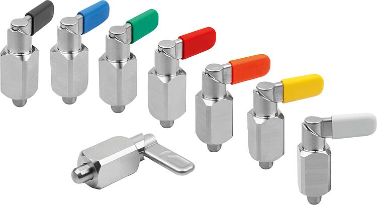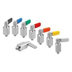 Cam-action indexing plungers, stainless steel with square sleeve, Form H, with grip caps |