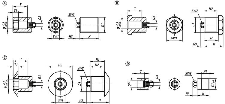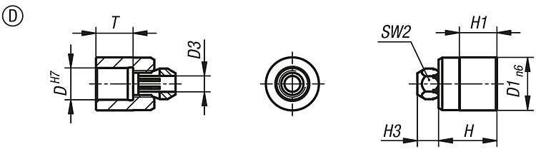 Positioning bushes, steel or stainless steel for status sensor, Form D, smooth