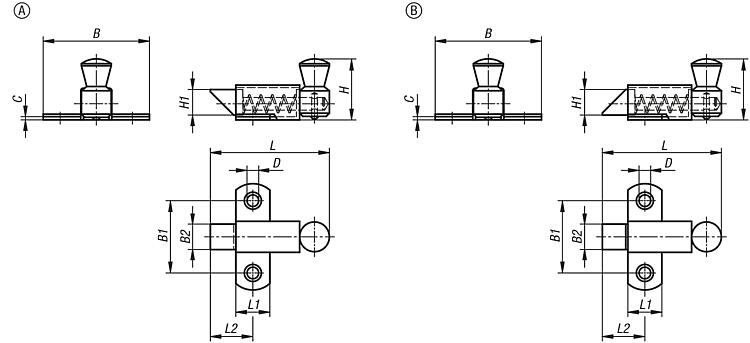 DescriptionMaterial:Housing die-cast zinc. Grip, underlay and slot tabs thermoplastic PA. Bolt stainless steel.Version:Housing painted silver. Grip, underlay and slot tabs black. Bolt bright.Note:Spring loaded bolt. Supplied with: - 2 underlays for mounting on level surfaces. - 2 of each tabs for mounting on profiles with 8 or 10 mm slots.Special features: DownloadHere is all the information as a PDF datasheet: