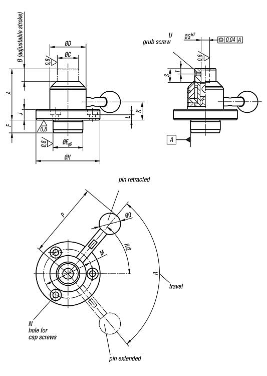 DescriptionMaterial, version:Body and locating pin carbon steel, tempered and black oxidised. Handle carbon steel, tempered. Ball knob black thermoset PF 31.Note:* Admissible hand force for the handle. ** Workpieces up to this weight can be located.Special features: DownloadHere is all the information as a PDF datasheet: