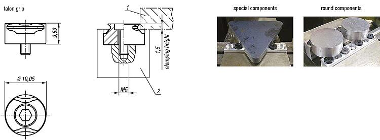 Talon grips expand the application possibilities of your machine vice. Round, contoured and oversized workpieces can be quickly and securely clamped by using talon grips.Drawing reference:
