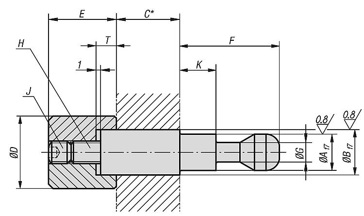 DescriptionMaterial:Carbon steel.Version:Pins tempered and ground. Knurled knob tempered, black oxidised.Note:The clamping pin length must be adapted to the workpiece by the customer. Dimension C defines the length of the clamping pin before machining. The dimension C must be adapted by the customer to suit the thickness of the workpiece. Afterwards, a thread with dimension J must be cut into the clamping pin. The assembly drawing must be observed to determine the length of the clamping pin. After machining the clamping pin to the correct overall length, the knurled knob is attached to the clamping pin using the two grub screws and locked. Special features: DownloadHere is all the information as a PDF datasheet:
