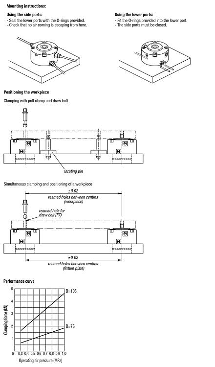 DescriptionMaterial:Carbon steel.Version:Clamping element hardened, ground and black oxidised.Note:Pneumatic pull clamps are used to clamp workpieces and fixtures.