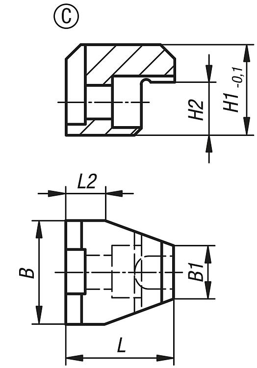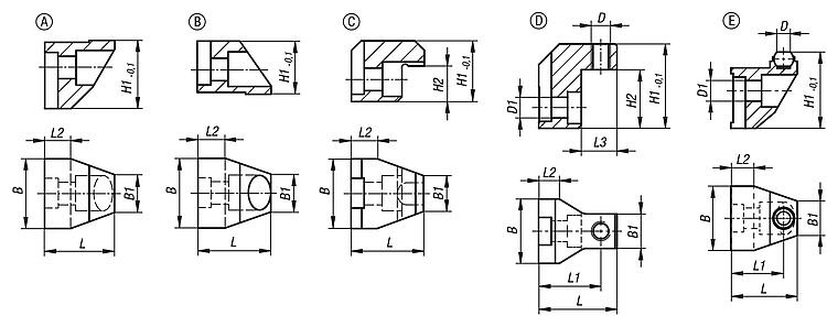 | Order No. | Form | Version 1 | B | B1 | H clamping range | H1 | H2 | L | L2 | CAD | Acc. | Price | Order |