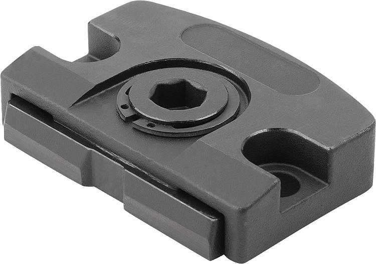 DescriptionProduct description:Form B without locating pin.Material:Carbon steel.Version:Black oxidised.Assembly:See drawing (Form A).Advantages:- Compact and flat design - Quick and easy clamping of componentsDrawing reference: