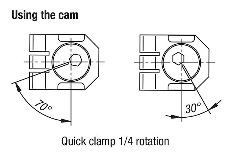 Version:Base element tempered.Note for ordering:The order number includes one pair, made up of a clamping element and a stop.Note:By turning the cam screw on the clamping element the workpiece is forced downwards (positive down force). The clamping element also forces the workpiece against the stop, thereby providing a flat parallel seating.