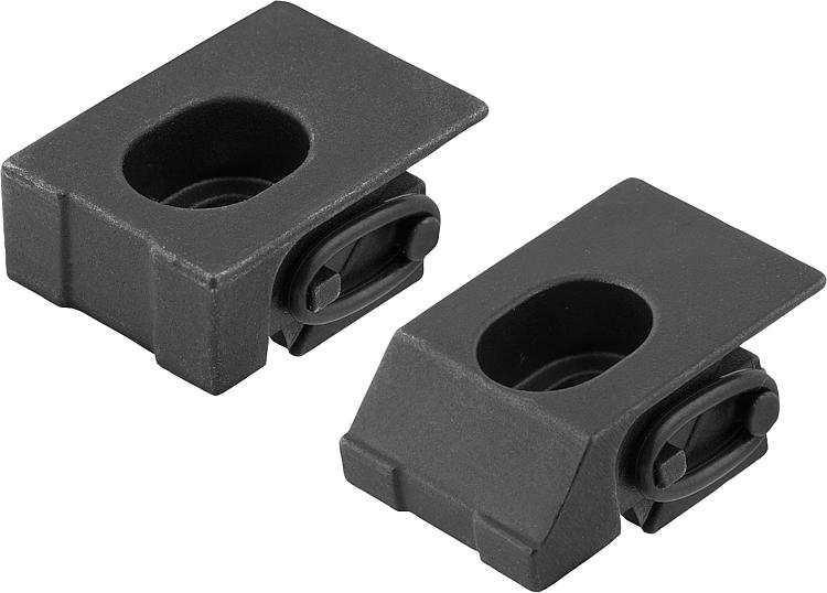 DescriptionMaterial:Carbon steel.Version:Hardened (33–39 HRC) and black oxidised.Note:Particularly low workpieces can be clamped using these flat clamps. Clamping element with pull-down effect. Clamping element and fixed block in one compact unit.Drawing reference: