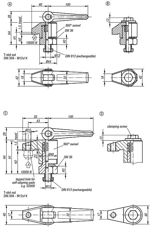 | 04620-14 | C | with cam lever and thread | 135 | 95 | 22 | 118-158 |  | | on request | |