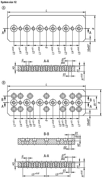 Users can customise the versions that have not been drilled to suit their applications.Advantages:- Fine adjustment in T-slots. - Sturdy version.Drawing reference: